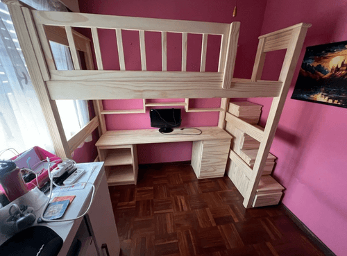 Maximice su espacio sin sacrificar la calidad con nuestra cama alta funcional con escritorio integrado.